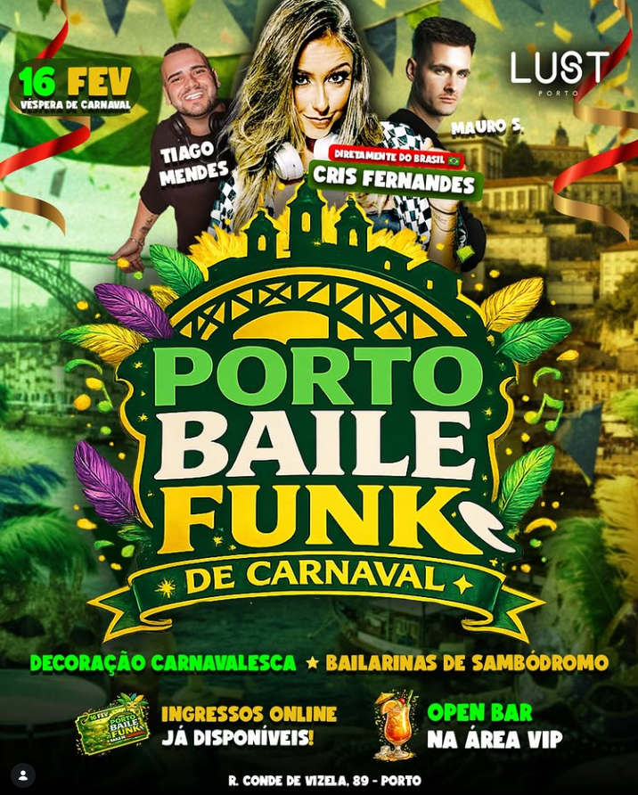 Porto Baile Funk: Carnaval na Lust com Open Bar e DJ Cris Fernandes