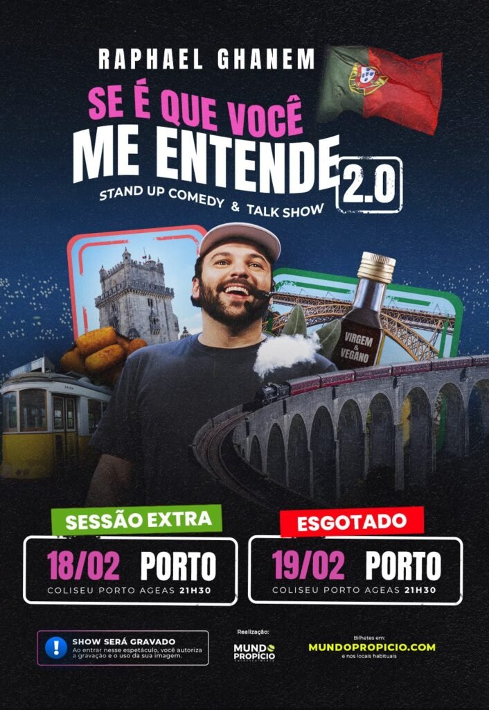 Depois do sucesso absoluto da sua primeira tour por Portugal em 2025, Raphael Ghanem regressa com uma nova versão do seu espetáculo: “Se é que você me entende 2.0”. Uma atualização irreverente e ainda mais afiada do stand-up que conquistou milhares de espectadores em Portugal e no Brasil.